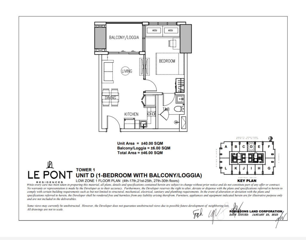 Jednotka D v Le Pont Residences je priestranný 46 m² 1-izbový apartmán, ktorý ponúka súkromný balkón/loggiu, kde si môžete vychutnať pokojnú atmosféru a mestský výhľad. Vo vnútri je apartmán premyslene navrhnutý s otvoreným obývacím a jedálenským priestorom, modernou kuchyňou a dobre zariadenou spálňou, ktorá maximalizuje pohodlie a štýl. Rezidenti majú prístup k exkluzívnym zariadeniam, vrátane nekonečného bazéna, súkromného kina a miestností na podujatia, čo zabezpečuje vyvážený životný štýl plný oddychu aj produktivity. Tento apartmán nie je len moderným domovom, ale aj atraktívnou investičnou príležitosťou.