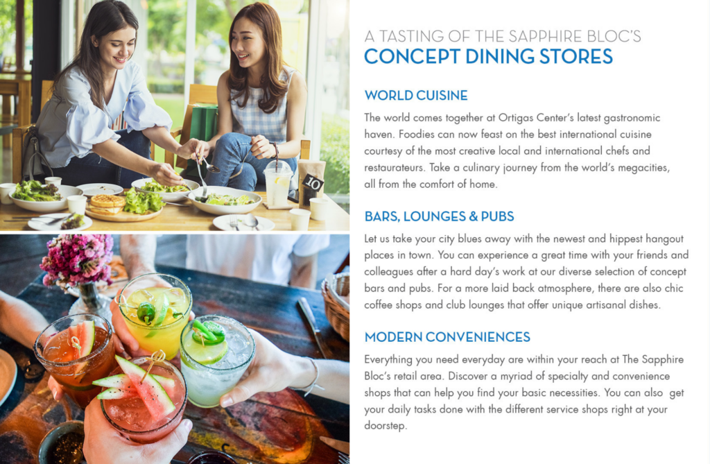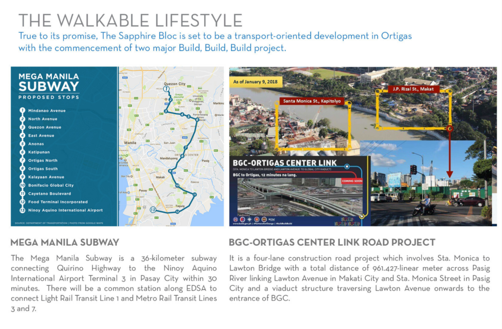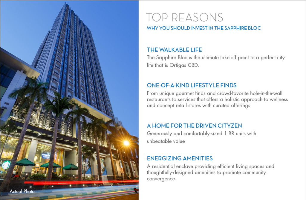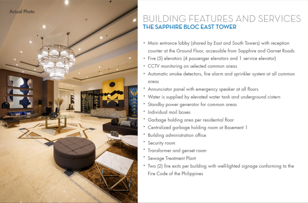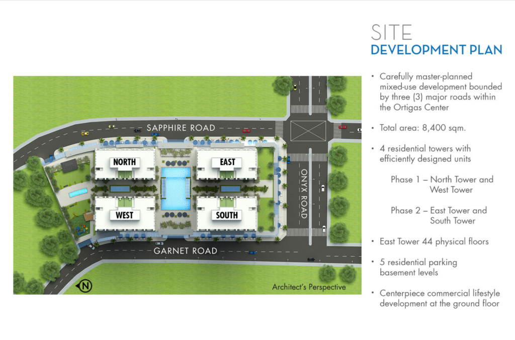 Sapphire Residences je strategicky situovaná v Pasig City, čo umiestňuje rezidentov do centra dynamického mestského prostredia s ľahkým prístupom k obchodným štvrtiam, nákupným centrám a rôznym stravovacím a zábavným možnostiam. Pasig City je známe svojou konektivitou a prosperujúcou komunitou, čo z neho robí vynikajúcu voľbu pre profesionálov, mladé rodiny a investorov, ktorí hľadajú kombináciu atraktívneho životného štýlu a značného investičného potenciálu v dobre rozvinutej oblasti.